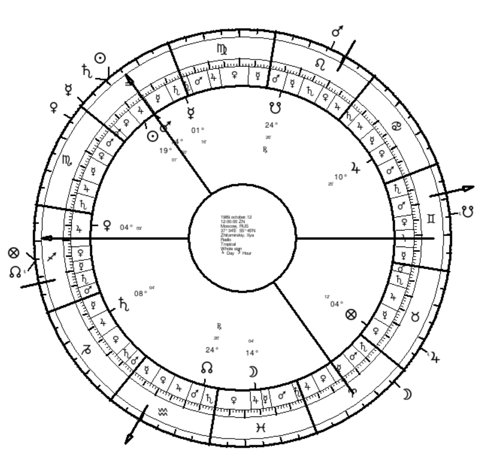 Ilya was born on October 12, 1989. I don’t know his time or place of birth, thus the possibility for very extensive chart work is ruled out unless such reliable information comes to light. I do know that he was born with the Sun at late 18 or early 19 degrees Libra, co-present with the malefic planet Mars at 14 degrees Libra, and Mercury at 1 degree Libra. Mercury is in phasis, and thus appears to be strong in the chart, showing intellectualism. This stellium of planets in the socially-oriented Air sign, Libra, is squared (in a sign with a 90 degree relationship with the other sign) by both Jupiter and Saturn (Jupiter and Saturn being opposed to each other in Cancer and Capricorn respectively.
