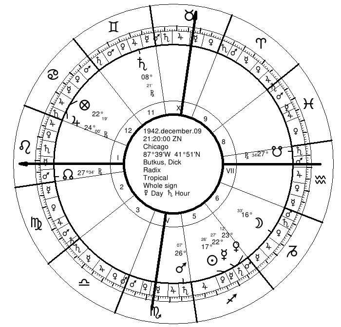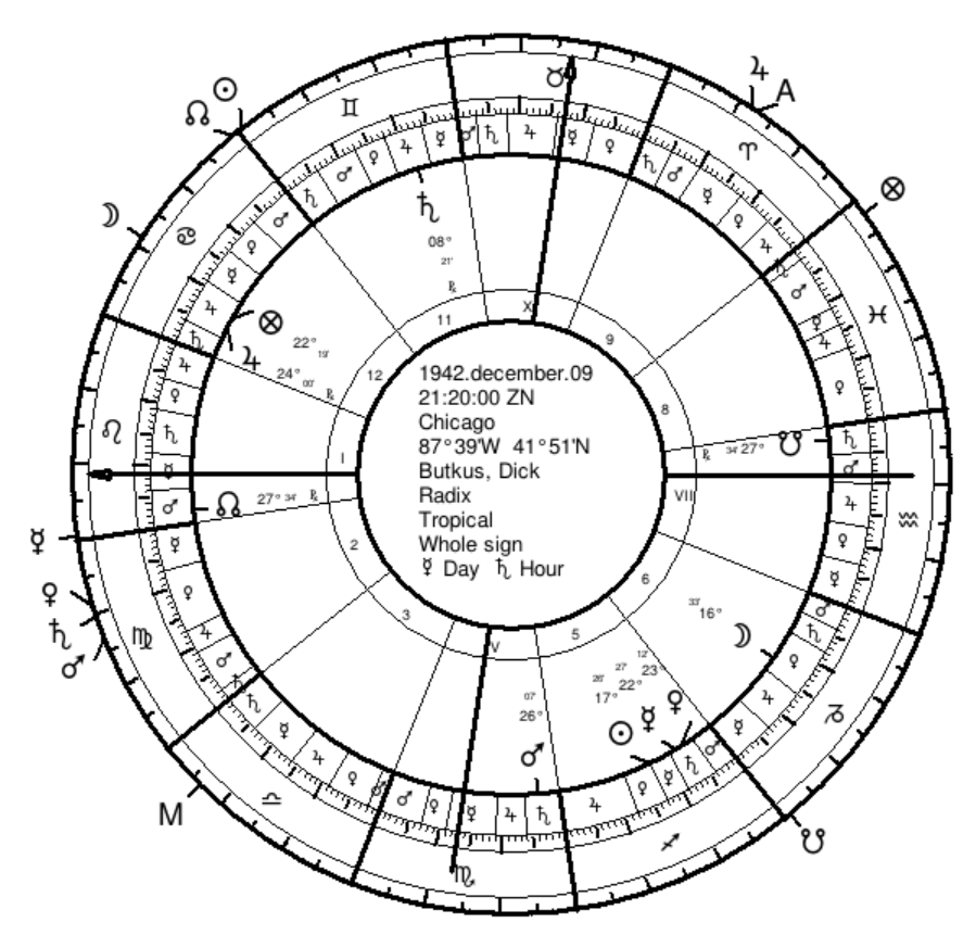 Dick Butkus Natal Chart with Twelfth-Parts (outside wheel)