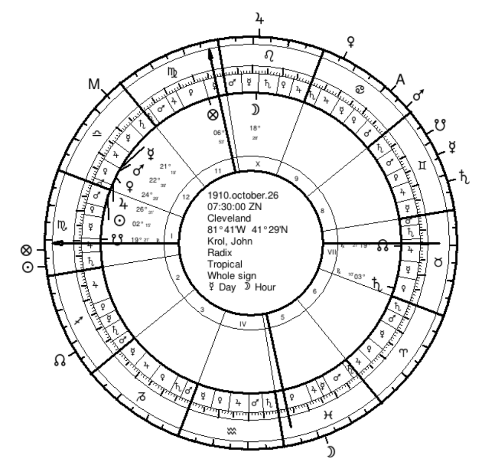 John Krol’s Natal Chart with Twelfth-Parts (outside wheel)