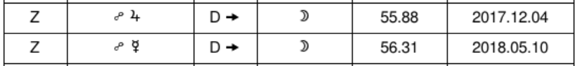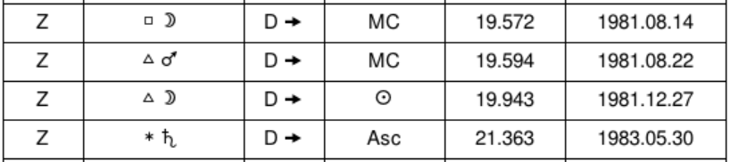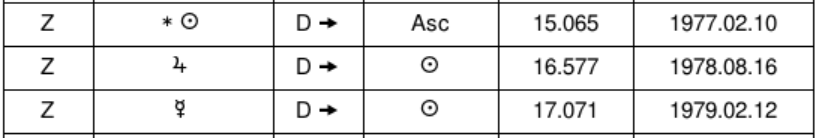The secondary progressed Moon is of interest as the Moon is lord of the year. The spMoon was in Leo (X) opposed to the Mercury-Jupiter conjunction.