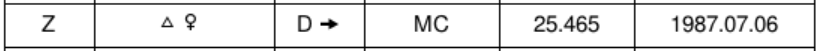 The solar return chart for age 32 is also fascinating. Venus is cazimi in the return to the minute of a degree! The chart also marks a return by sign for every planet except the Moon and Jupiter. srJupiter was in the 1st house of self. sfMoon, the lord of the year, was applying a partile sextile to the Sun-Venus conjunction from Pisces, the 5th house.