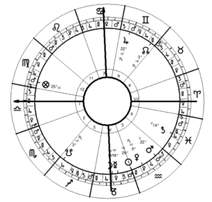 Fear-inducing (Saturn) and violent (Mars) spiritual entities (9th place) tended over by nature, night, and instinct (the Moon) are frequent themes in his work. The connection with art pertains to the fact that the malefics oppose and rule his Venus, the goddess of beauty and art. Venus is in the 3rd House, the Joy of the Moon, in the nocturnal house of Saturn (Capricorn), in the bound of Mars, and with the Moon as the primary triplicity lord. Her twelfth-part is in the 1st House, that of the self, in the nocturnal house of Mars (Scorpio), in the bound of Jupiter.
