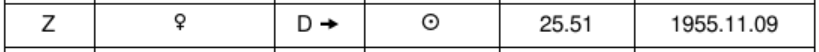 The marriage was on November 5th, 1955, when Carpenter was 25.5 years old. By primary directions, Venus directed to the natal Sun within a week of the wedding.