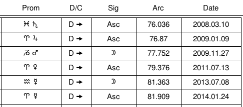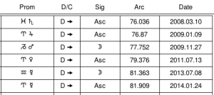 In later traditional astrology, there was something of an obses­sion with direct hits by pri­mary direc­tion. This contrasts with the traditional emphasis on the distributor as time lord. After about the 15th century CE there also was an outgrowth of different ways of calculating primary directions. However, the traditional manner of calculating them, in the zodiac using semi-arcs without latitude and by the rate of the Ptolemaic key, was the standard before then. I touch on some of these issues in my intro­duc­tory post on pri­mary direc­tions (and there’s a post on software cal­cu­la­tion).