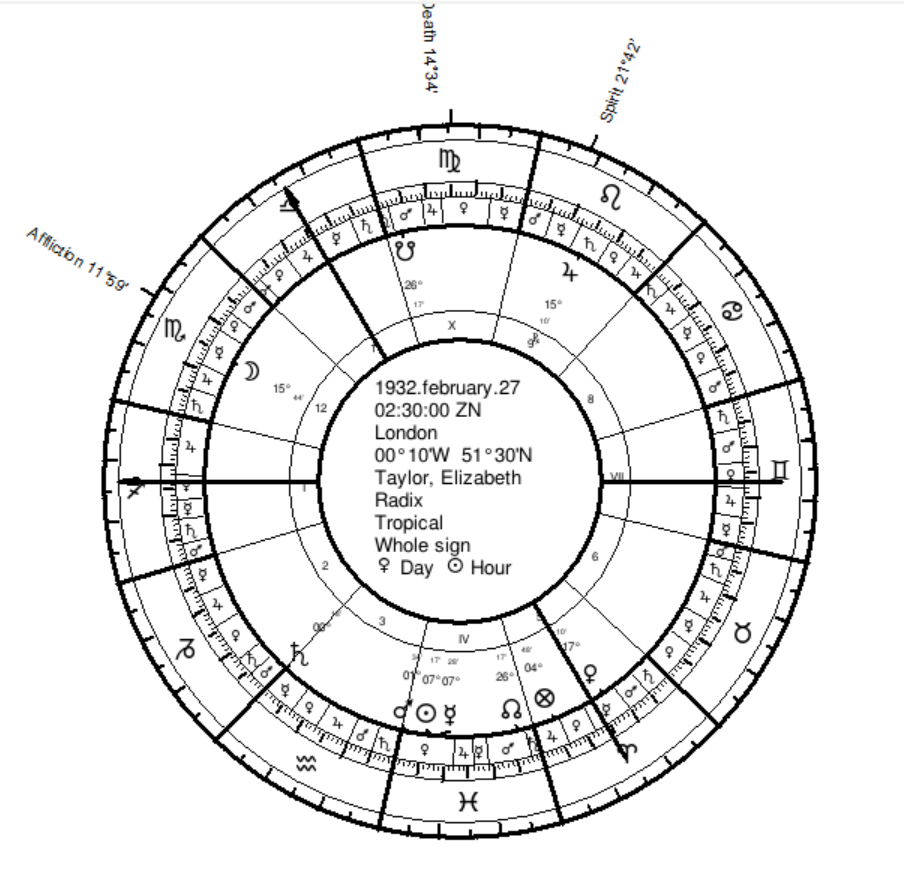 Liz Taylor’s Natal Chart with Twelfth-Parts