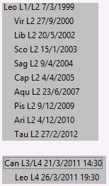 In conclusion, the zodiacal releasing of the second level (December 2010 to February 2012) highlighted a sense of vitality and heart (the Sun rules the heart) undergoing turmoil or violence (Mars). It was an activation of the natal Sun-Mars conjunction, also highlighted by planetary years.  The third level, Cancer, started on March 21st, 2011, and activated the natal Moon-Mars relationship. Mars transmits to the Moon and activates two houses with particular relevance for death (the 8th, Cancer, and the 8th from Fortune, Scorpio). The fourth level (March 21-25) again put the emphasis squarely on the Moon, with the death occurring on a lunar return.