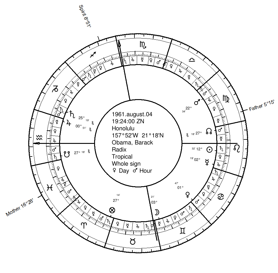 Valens used two different lots, one for sons and one for daughters. I believe both should be considered. The Lot of Sons is from Jupiter to Mercury (not reversed). The Lot of Daughters if from Jupiter to Venus (not reversed). Maternus had a variant in which it appears that the shortest distance between Venus and Mercury was used. I won’t be considering the Maternus lot.